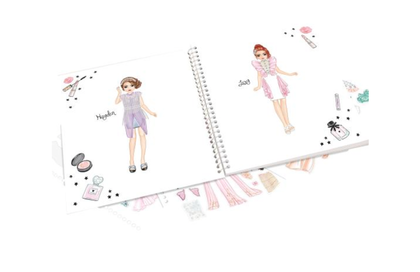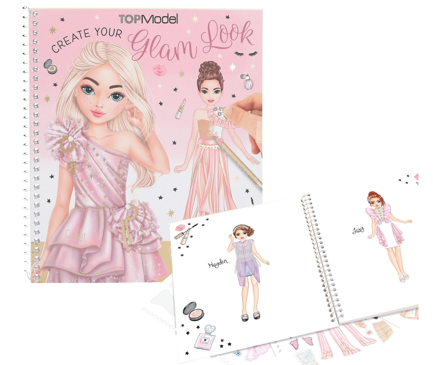 Glamorously ingenious! The TOPModel colouring book Create Your Glam Look has 36 pages with model figurines that can be styled with pens and stickers. Also included: 6 sheets of stickers with shimmering hot-foil embossing