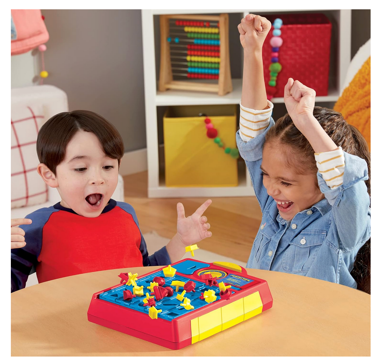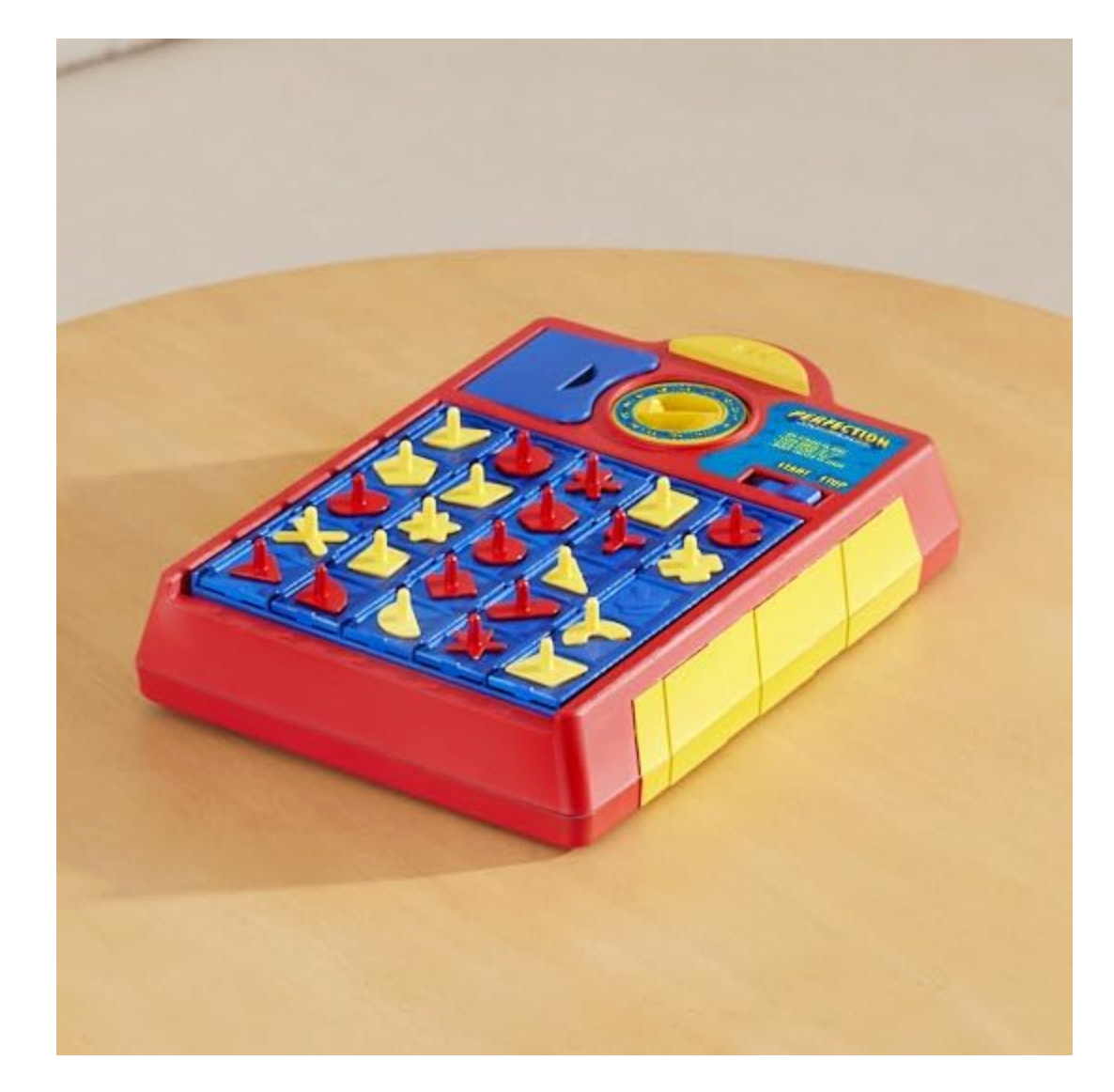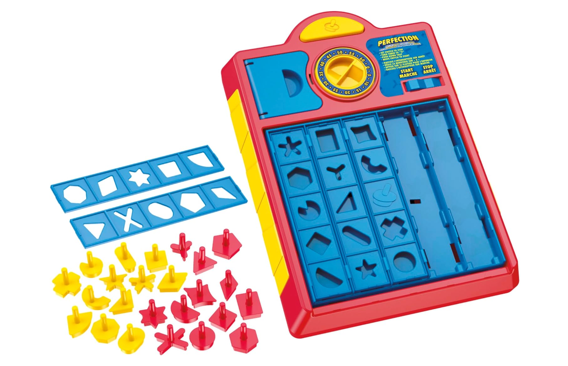 The Perfection game has players on the edge of their seats as they try to beat the clock before the pieces pop! Be the quickest to fit the shapes into their matching holes in the tray. But watch the timer! If it runs out … pop goes the Perfection game! This edition of this fun kids' game of memory lets players customize the trays: rotate them, flip 'em over, and swap them around … there are over 250 different combinations! Players race against the clock before the pieces pop in Single-Player Mode, or play against friends in Multi-Player Mode and be the first to finish and press the pop button themselves. For younger players, play without the timer until they're ready to amp up the action. And, when they're done playing, easily store the pieces inside the game unit. This preschool game is a great choice for playdates, Family Game Night, and indoor fun for ages 5 and up! Perfection and Hasbro Gaming and all related properties are trademarks of Hasbro.
