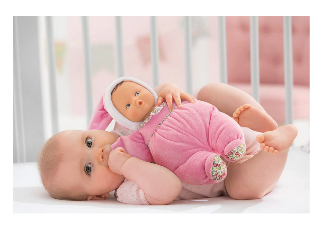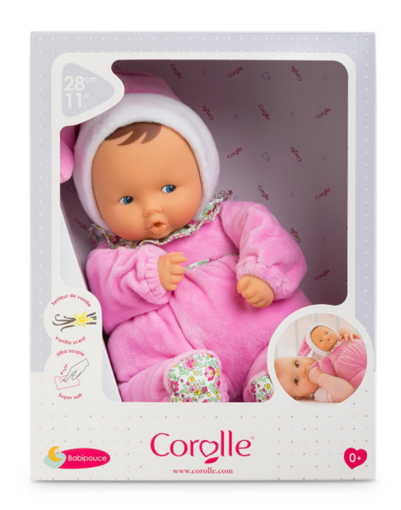Babipouce Blossom Garden is super soft and cuddly And has a charming, realistic vinyl face that charms and comforts baby and that is delicately scented with vanilla -- a Corolle signature. It's also perfectly sized (11" Tall) and lightweight so it's easy for tiny hands to hug and to hold. A plus for parents: Babipouce cotton Flower has a sewn-in tag with space to write baby's first Name or a phone number in case the doll is lost. Babipouce Blossom Gaarden is machine washable, delicate cycle. Mon doudou Corolle: Friends forever. From birth