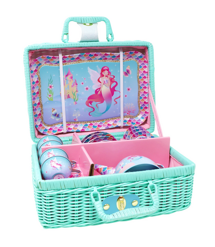 Pink Poppy Shimmering Mermaid Tin Tea Set in Carry Case