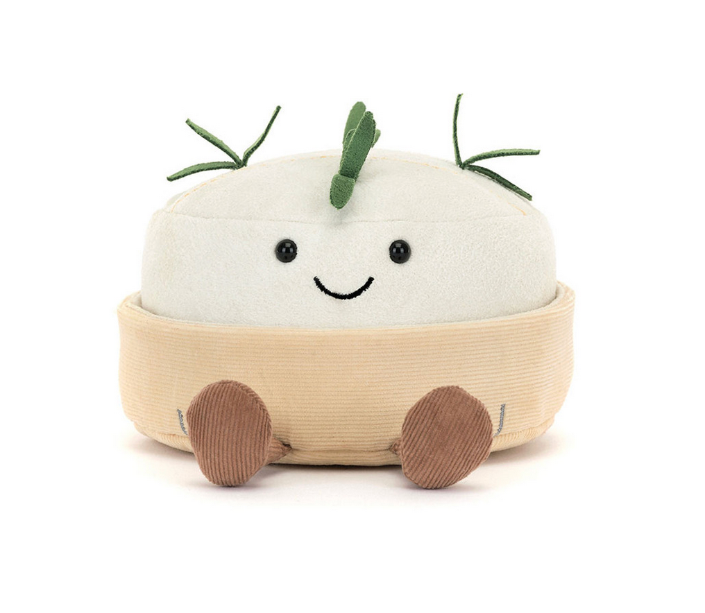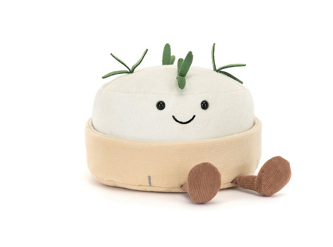 Amuseables Camembert is here to spread cheesy joy. This cream suedette cheese has stitched rind detail, and is topped with sprigs of suedette rosemary. Nestled in its fine cord container with staple detail, this smiling cheese can be taken out of its box for foodie hugs. The perfect gift for any foodie friend.