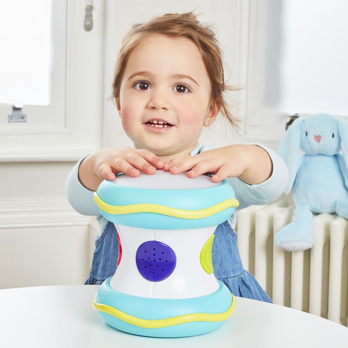 Pat the drum for drum-beats, press the buttons for sounds or activate lights and sounds when the drum is rolled