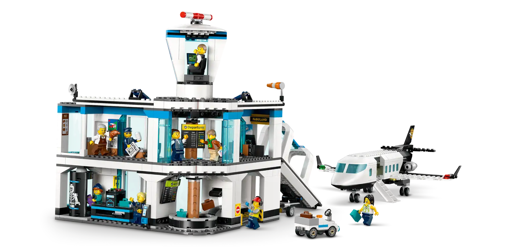 Playtime will take flight with the LEGO® City Airport with Airplane (60502) building kit for kids ages 8 and up. This detailed model airport is packed with features for pretend play. Kids can pass luggage through the toy scanner, rotate the walk-through metal detector to reveal an X-ray skeleton and change the departure display to offer a choice of 4 destinations. The set also includes a cool toy passenger airplane with a detailed cabin and fold-down stairs, plus an airport tug and a jet bridge. Just add the 9 minifigures for hours of imaginative play. This airport toy makes a great gift idea for boys, girls and kids who love model airplanes and LEGO building sets. Add it to other sets (sold separately) from the LEGO City range for even bigger adventures. Team up with friends and family with Build Together mode in the LEGO Builder app, where everyone has fun building part of the set using their own devices. Set contains 887 pieces.
