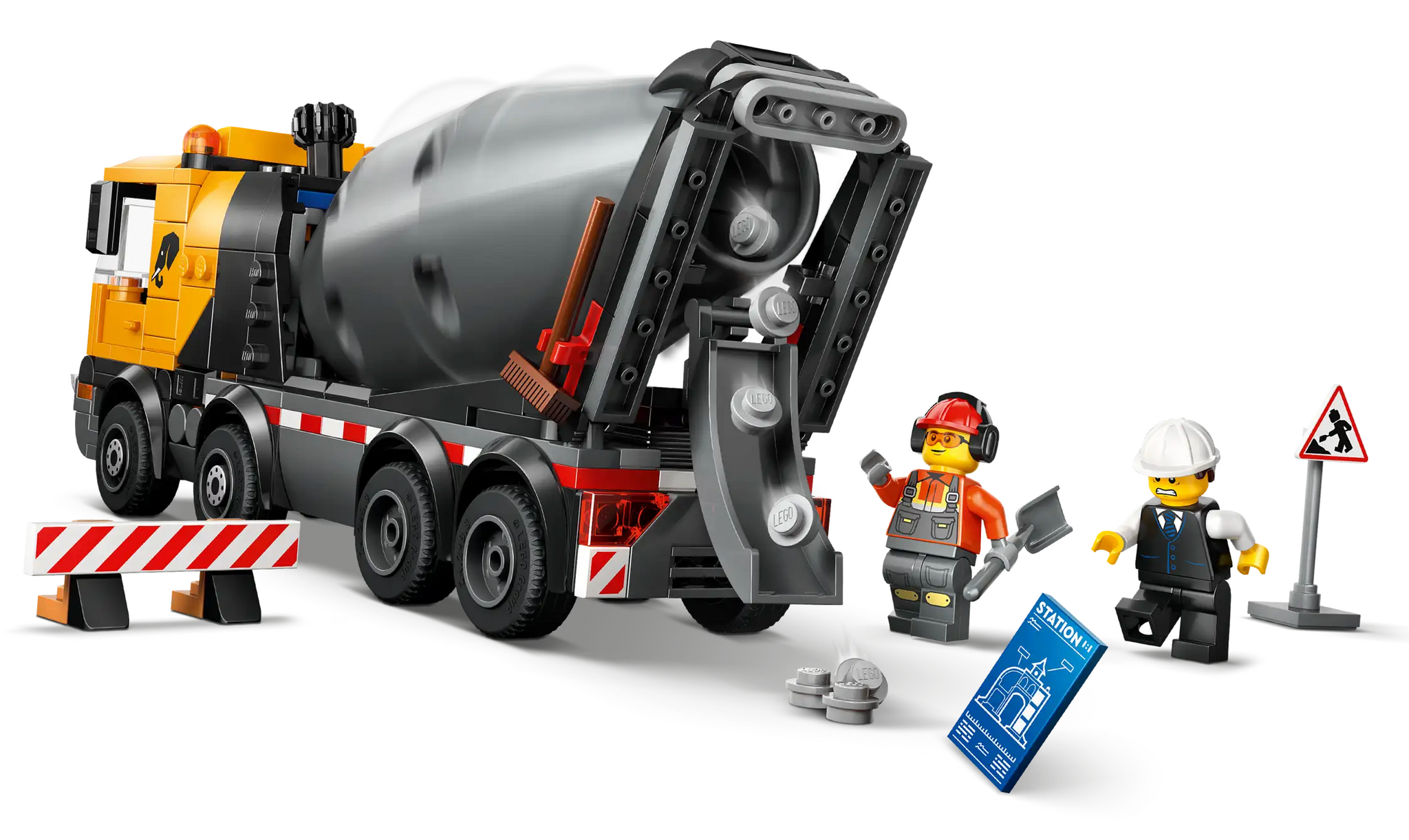 Fans of construction toys will love the LEGO® City Cement Mixer (60478) model building kit for ages 7 and up. This detailed concrete mixer truck with 8 rubber tires features a large drum with an Archimedes’ screw system. Kids can turn a dial to mix and dispense the LEGO cement down the adjustable chute, just like real cement pouring. This big toy truck also features a driver’s cab that tilts to allow access to the engine. Accessories include a wheelbarrow, a road sign and 2 barriers, plus driver, construction worker and architect minifigures for creative play. This kids’ LEGO City model construction truck makes a great birthday or holiday gift for 7-year-old boys and girls who love building site vehicles. Add this set to others from the LEGO City range (sold separately) for even bigger adventures. Kids can enjoy intuitive building with this toy vehicle playset in the LEGO Builder app, zooming and rotating with 3D instructions, while saving and tracking progress. Set contains 371 pieces.