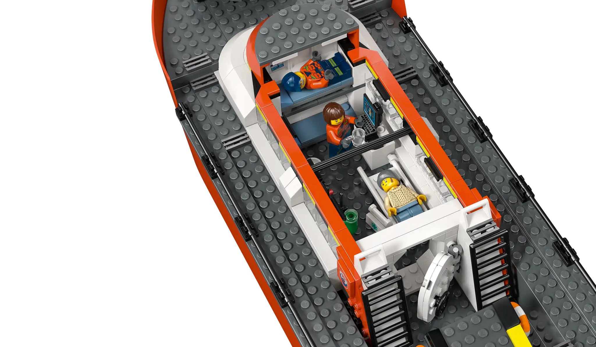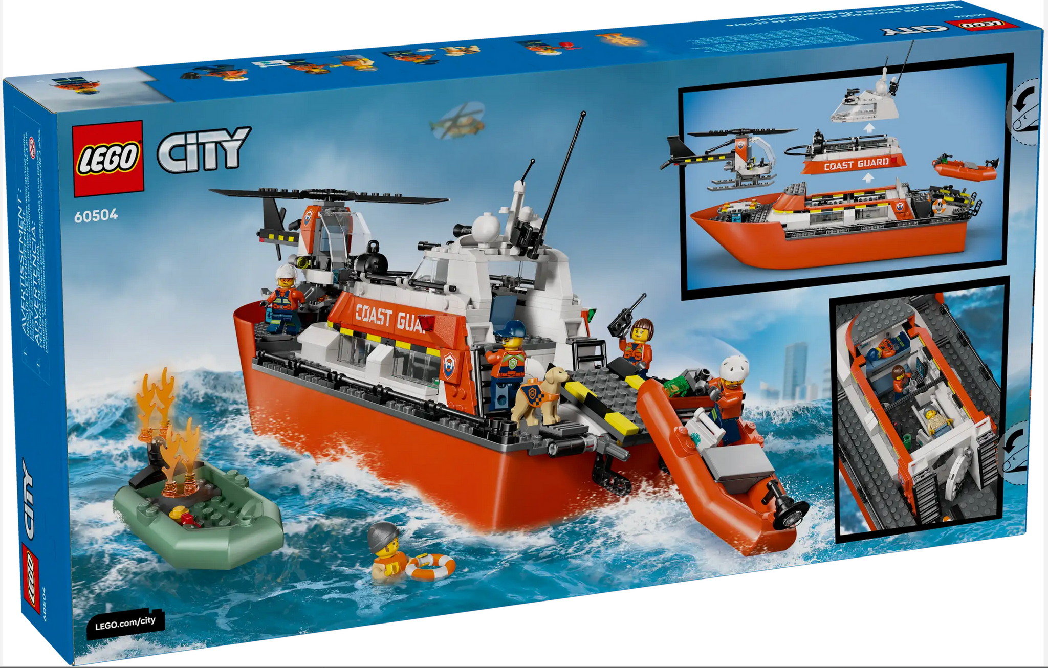 Kids ages 7+ can set out on ocean adventures with the LEGO® City Coast Guard Rescue Boat & Helicopter (60504) pretend play toy. This feature-packed floating boat with removable deck layers allows easy access for play in the ship’s control bridge, sleeping quarters and kitchen. Kids can deploy a rescue dinghy from the launch ramp or take to the skies from the onboard helipad in a cool helicopter. The set also includes a second dinghy, LEGO flames, 5 minifigures and a dog figure for imaginative play and storytelling. All 3 boats float on water. This search-and-rescue emergency vehicles toy playset makes a great surprise treat or birthday gift for boys and girls who love hands-on interactive play. Add this set to others (sold separately) from the LEGO City range for more exciting adventures. With this pretend play building set, kids can enjoy intuitive building with the LEGO Builder app, zooming and rotating with 3D instructions, while saving and tracking progress. Set contains 742 pieces