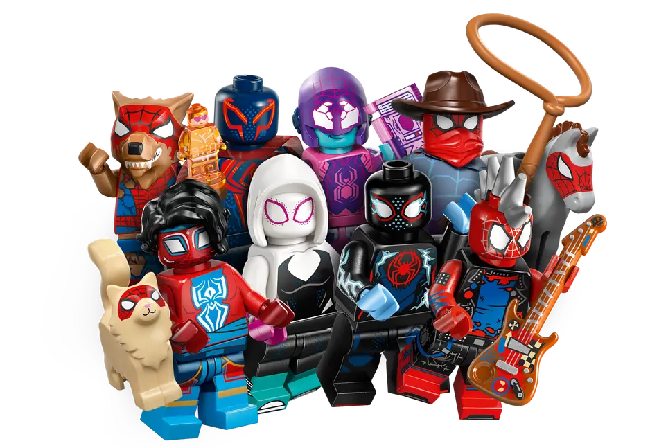 There is 1 surprise collectible Spider-Man toy construction minifigure in each box and a total of 12 to collect: Miles Morales/Spider-Man, Miguel O’Hara/Spider-Man 2099, Gwen Stacy/Spider Gwen, Hobie Brown/Spider-Punk, Pavitr Prabhakar/Spider-Man India, Miles G. Morales/Prowler, Peter B. Parker/Spider-Man & May “Mayday” Parker, Margo Kess/Spider-Byte, Peter Parker/Werewolf Spider-Man, Patrick O’Hara/Web-Slinger, Petra Parker/Cyborg Spider-Woman and Charlotte Webber/Sun-Spider.