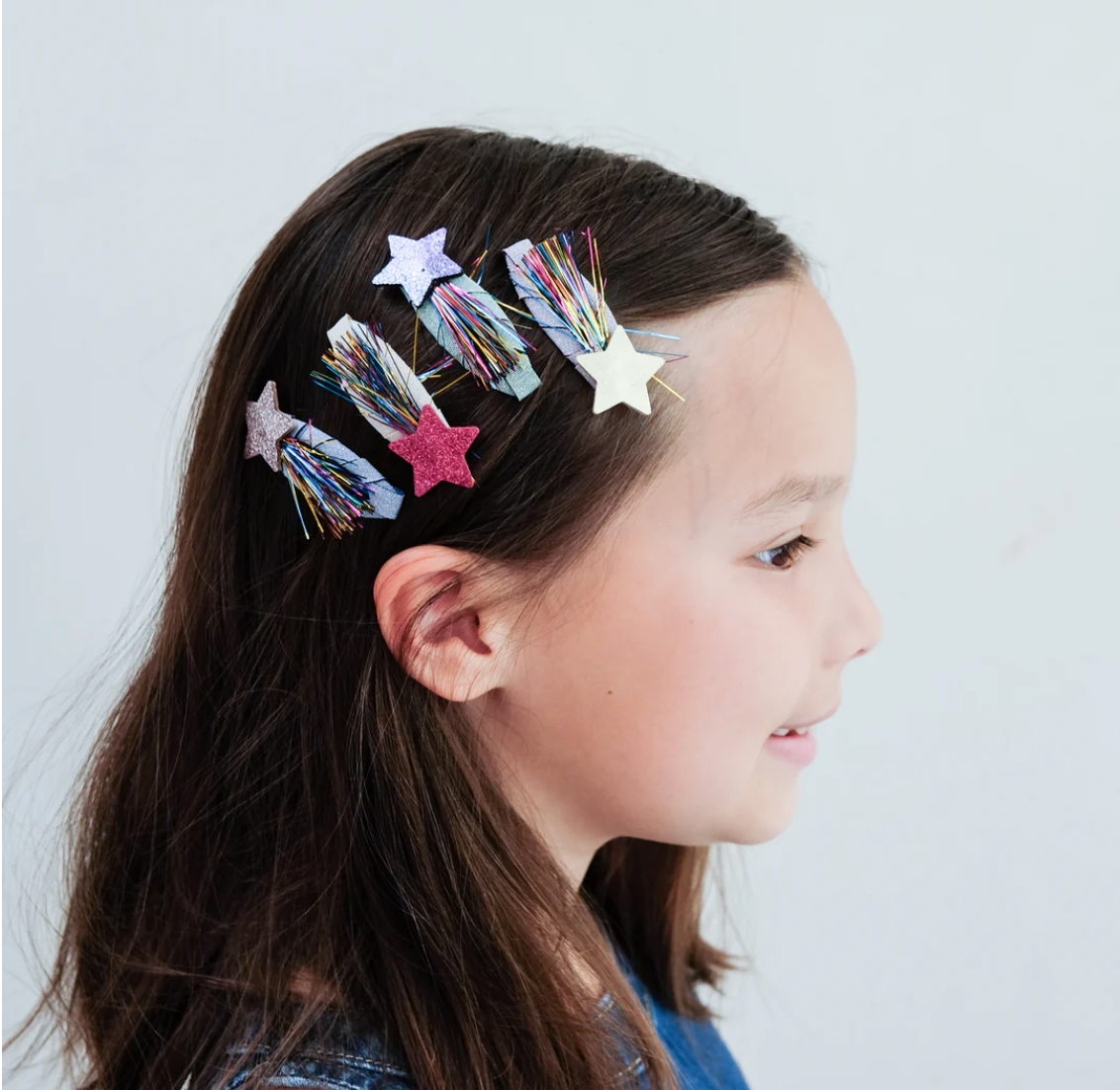 Add a sparkly scoop of colourful fun to their hair with our Tinsel star hair clips! Perfect for parties or play dates alike - these are sure to brighten their day!