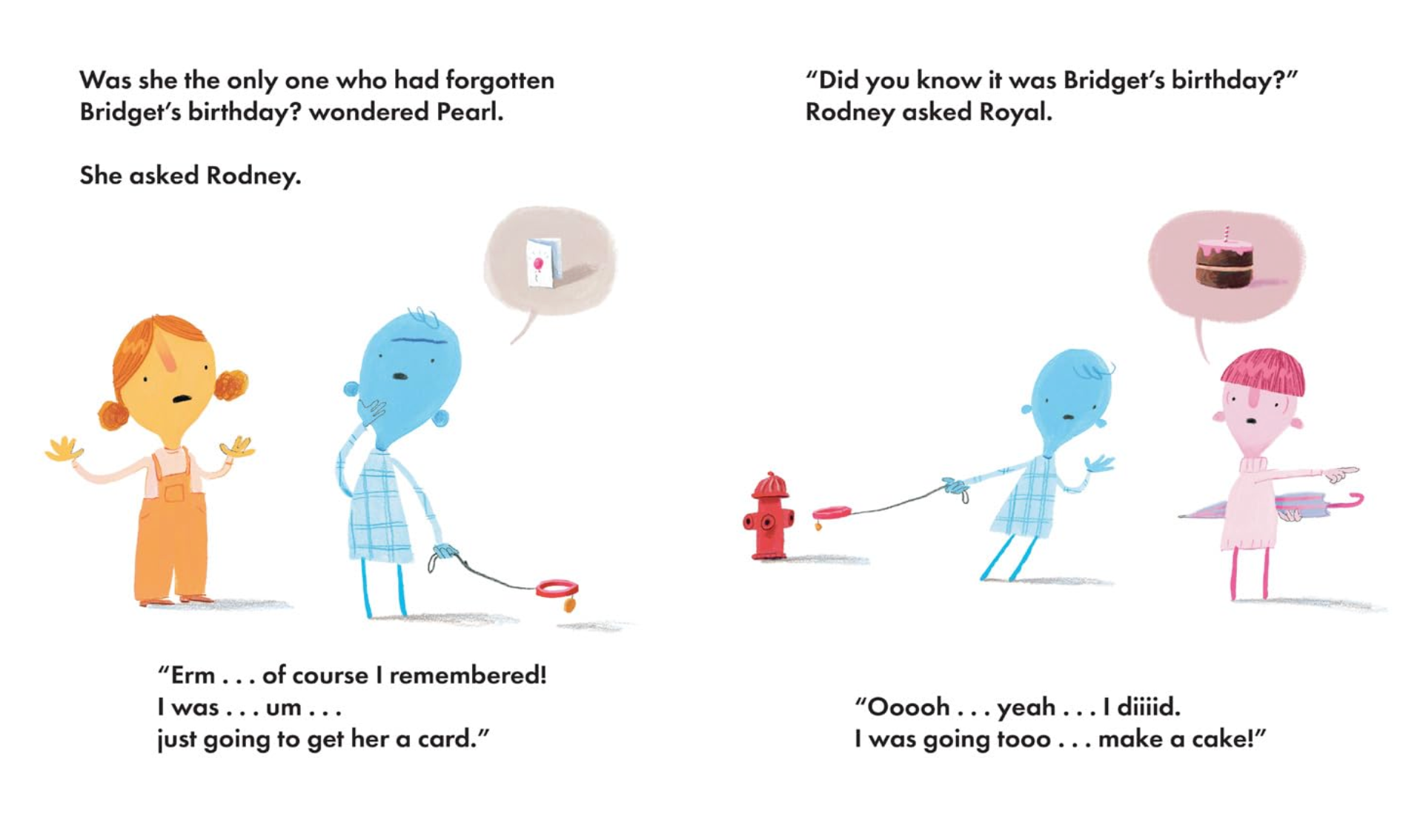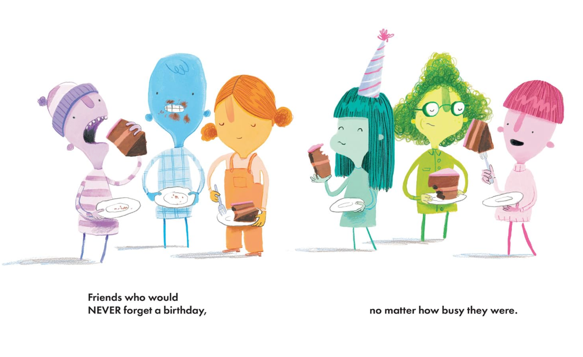 Its Bridgets birthday, and she wants to celebrate with her friends but theyre all too busy! Royal has places to be, Rodneys tied up, Regis is washing his hair, and Pearls checking off her to do list. Will Bridget be left to spend her birthday alone? With bold, expressive artwork by Oliver Jeffers, this heartfelt story is a reminder that friendship matters more than a packed schedule and that the best moments happen when we make time for the people we care about.