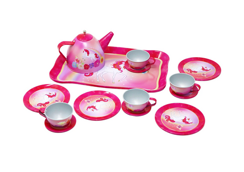 Pink Poppy Unicorn Butterfly 14 Piece Tin Tea Set