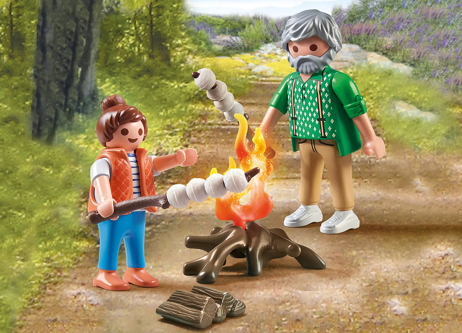 Grilling marshmallows over the campfire is a great fun for young and old alike! Marshmallows are threaded onto the stick one by one and then slowly held over the fire. But beware: Don't get too close, or you might end up with charcoal cubes. The PLAYMOBIL Tiny House play world invites children to playfully engage with the themes of sustainability and environmental protection.