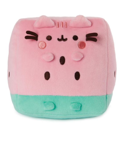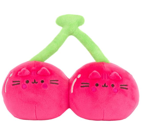 Pusheen is here as a juicy watermelon, sweet kiwi fruit and is the cherry on top! Pusheen as a double cherry has detailing with embroidered facial features and her signature smile, whiskers, and rosy cheeks. This squishy, extra-squeezable Squisheen features velvety-soft, bright red and green plush fabrics. Her adorable striped tails also stick out the back which keeps the Pusheen plush pair upright. Pusheen as a kiwi fruit is huggably round, her soft body is detailed with a vibrant green plush interior, while her almond-coloured kiwi skin is made from a delightfully soft, curly textured plush fabric. She also features her signature smile, whiskers, rosy embroidered cheeks, and a ring of dark brown embroidered seeds. The Pusheen watermelon features embroidered details, including Pusheen's super-sweet smile, whiskers, stripes, and watermelon seeds.