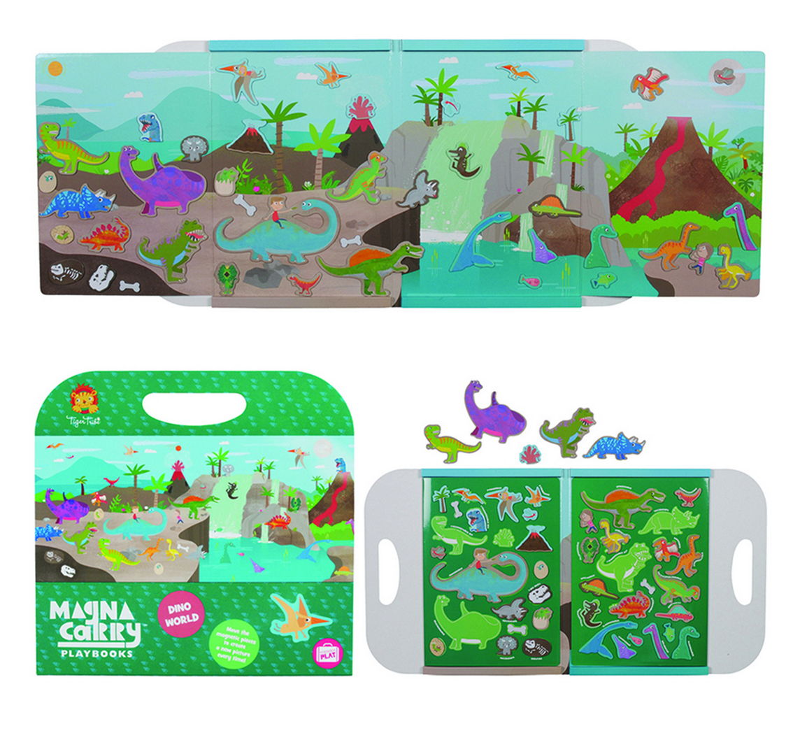 Designed and illustrated in Australia by the Tiger Tribe team — Magna Carry helps develop imagination and fine motor skills, all the while encouraging independent play. Each set comes with 2 sheets of press out magnets and is super portable (easy to fold up and take with you).