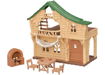 The Lakeside Lodge comes with furniture and accessories. Have your figures cook at the wood-burning stove, eat at the dining table, or sleep in the hammock. The roof has a secret slide that only baby figures can play on. Combine with Adventure Tree House, Family Campervan, Baby Ropeway Park, Baby Hedgehog Hideout or Baby Collectibles (sold separately). Includes: Main Unit, Hammock, Table, Chair x2, Stove, Cooking Net, Acorn-Shaped Cup x2, Marshmallow x2 (a total of 11 pieces) Age: 3 yrs+