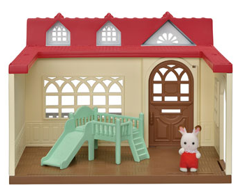 The Sweet Raspberry Home is a one-storey house with an amazing entrance terrace and red roof. It comes with Creme, the Chocolate Rabbit Baby and a baby bed with a slide, so you can play with this set right away. With its large interior and high ceiling, hands can fit inside for easy play. This cute little home is the ideal start to your journey of developing your very own Sylvanian Families village.Includes:- 1 x Main Unit, 1 x Chocolate Rabbit Baby, 1 x Bed with Slide (a total of 3 pieces).Combine with Red Roof Cosy Cottage or Red Roof Country Home (both sold separately) to create a huge house.