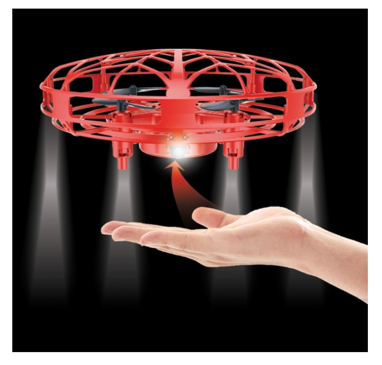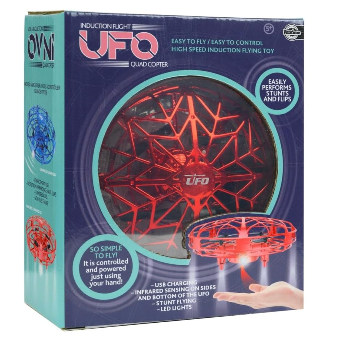 Funtime UFO Quadcopter Induction Toy is made from high quality material. It is easy to fly, easy to control. No remote needed, just control with your hand. Side sensors allow you to steer the ufo just with your hand. Stunt and trick mode. Inductive suspension and collision prevention built in. Built in gyroscope aids balance, sensitivity and accuracy. Strong and durable, built in LED light, USB charging.